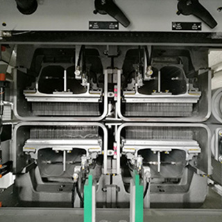 引進德國、英國兩條先進的濾料生產線,采用全自動進口縫合生產線和熱能粘合縫制濾袋,具有日產1萬平過濾材料、2000條各種濾袋生產能力